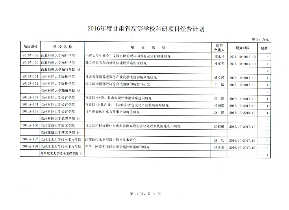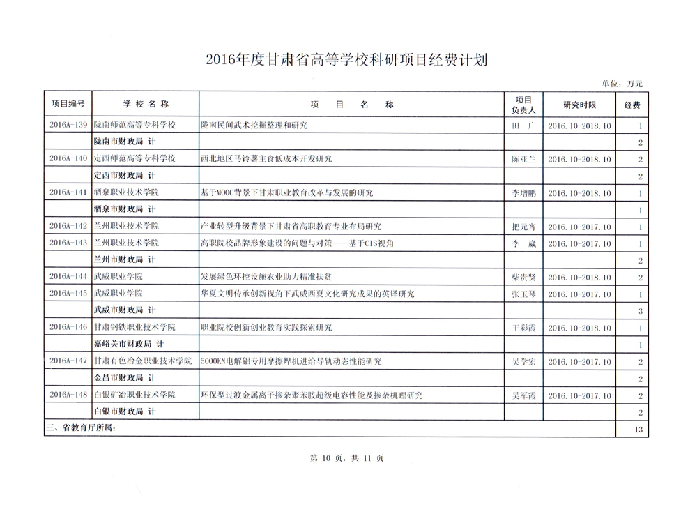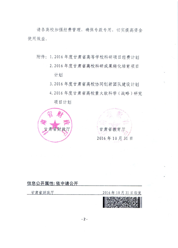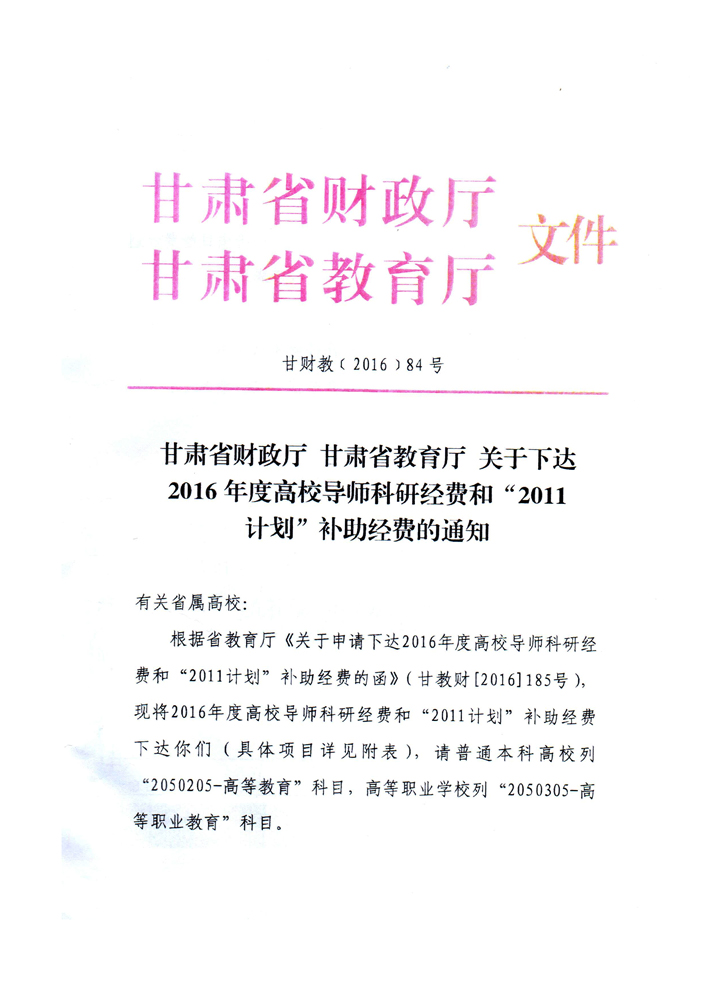 甘肅省教育廳關于下達2016年度甘肅省高等學校科研項目自籌經費項目的通知