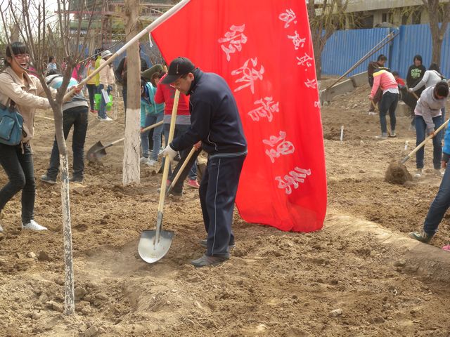 在勞動(dòng)的過程中,我系承擔(dān)了全院最重的工作任務(wù)量,盡管天氣惡劣,揚(yáng)沙彌漫,不管男生還是女生,他們都很認(rèn)真的對待這次活動(dòng),雖然植樹的那片區(qū)域土質(zhì)很硬,樹坑很難挖,很多男生因?yàn)閹兔ν跇淇邮侄寄コ鏊輥砹?,但是沒有一個(gè)人抱怨過。總之學(xué)生們勞動(dòng)的積極性很高,保質(zhì)保量的完成了安排給經(jīng)管系的勞動(dòng)任務(wù)。最后,經(jīng)過市綠化所驗(yàn)收合格,順利完成了我系的義務(wù)勞動(dòng)任務(wù)。
