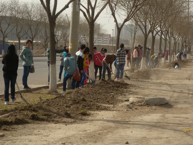 為了更好的綠化城市環(huán)境,學(xué)院安排學(xué)生進(jìn)行義務(wù)植樹勞動(dòng)。2013年4月8日早晨八點(diǎn),我系邸主任、白書記以及全體班主任帶領(lǐng)經(jīng)濟(jì)管理系650名學(xué)生在武威市二環(huán)西路(農(nóng)機(jī)十字-海藏南湖-金熊貓公寓綠地東、北)進(jìn)行了翻挖、清理綠化帶、樹穴等任務(wù)。