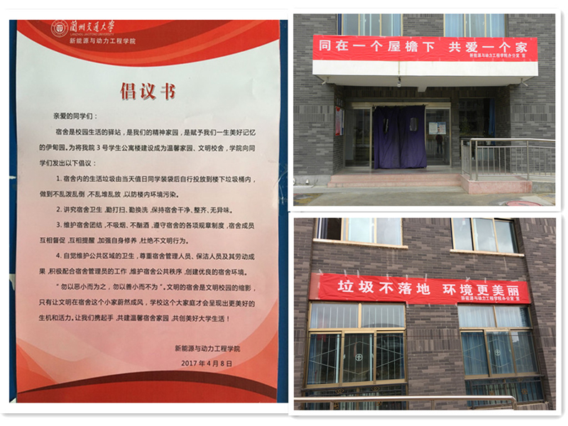 本次活動(dòng)學(xué)院從學(xué)生的生活細(xì)節(jié)入手,融入大學(xué)生自我管理、自我服務(wù)、自我教育理念。學(xué)院重視活動(dòng)開展前的宣傳工作,4月10日,學(xué)院召開了學(xué)生會(huì)干部工作會(huì)議,將學(xué)院的倡議要求傳達(dá)至每一位學(xué)生,并在學(xué)生公寓樓及教學(xué)樓公告欄粘貼了倡議書及宣傳橫幅。學(xué)院倡導(dǎo)學(xué)生自主清理宿舍內(nèi)的生活垃圾,由宿舍值日同學(xué)投放到樓下的垃圾桶里,做到不亂堆亂放垃圾,不亂潑亂倒污水,保持公寓整潔、無(wú)異味;尊重公寓管理人員、保潔人員及其勞動(dòng)成果,自覺(jué)維護(hù)宿舍及公共區(qū)域的衛(wèi)生,杜絕一切不文明行為;宿舍成員互相督促,互相提醒,生活學(xué)習(xí)雙促進(jìn),共同踐行“垃圾不落地,環(huán)境更美麗”,“同在一個(gè)屋檐下,共愛(ài)一個(gè)家”的倡議。全院學(xué)生積極響應(yīng)倡議,主動(dòng)按要求清理投放生活垃圾,公寓內(nèi)外衛(wèi)生狀況良好。學(xué)院打算將此項(xiàng)工作長(zhǎng)期抓下去,由前期的引導(dǎo)、督促、檢查,變成學(xué)生的自覺(jué)行為。