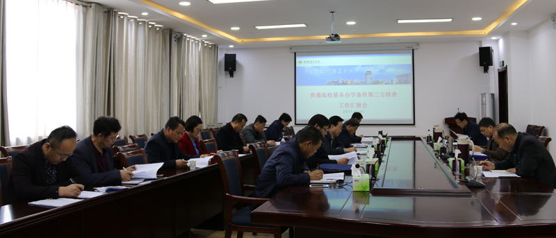 學(xué)院召開匯報會,李引珍就本次核查的具體要求作了說明。院長、黨委副書記宗瑞謙圍繞學(xué)院師生比、研究生學(xué)位專任教師比例、生均教學(xué)行政用房、生均圖書、生均教學(xué)儀器設(shè)備值、生均占地面積、生均宿舍面積7項基本辦學(xué)指標和我院2016年招生計劃執(zhí)行情況、專業(yè)設(shè)置、畢業(yè)生就業(yè)情況3項重點內(nèi)容作了匯報。
