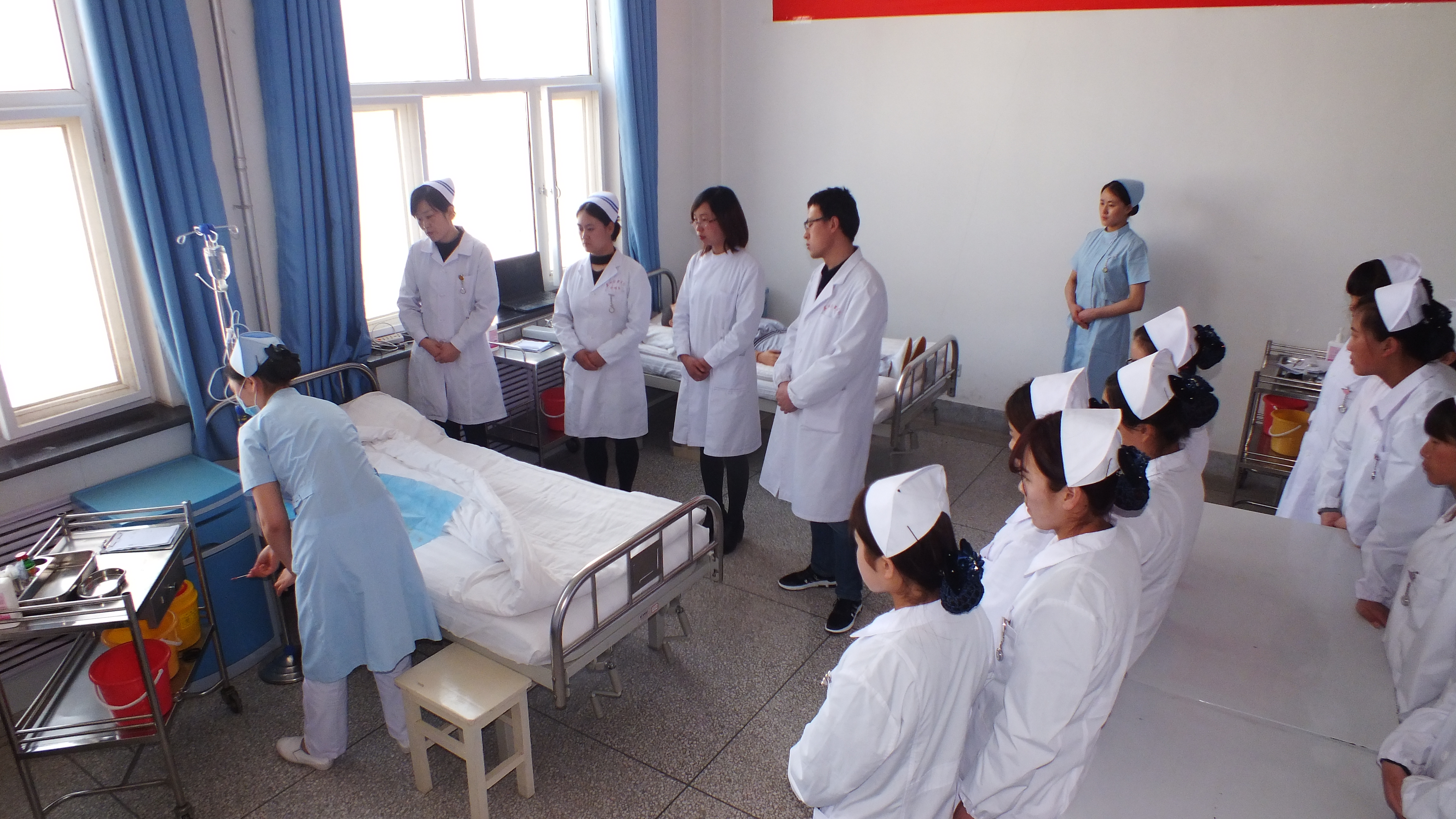 院系領(lǐng)導(dǎo)對(duì)賽前訓(xùn)練情況時(shí)刻關(guān)注,學(xué)院黨委副書記趙明,護(hù)理系黨總支書記張建輝、系主任韓曉萍多次親臨訓(xùn)練現(xiàn)場(chǎng)進(jìn)行檢查指導(dǎo),提出了一些有針對(duì)性的意見(jiàn)和建議,充分肯定了老師們的認(rèn)真指導(dǎo)與辛勤付出,鼓勵(lì)選手們發(fā)揮潛能,賽出水平,展現(xiàn)我院學(xué)生的優(yōu)秀風(fēng)采,在即將到來(lái)的大賽中取得好成績(jī)。