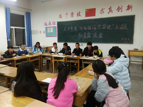 通過組織各班團(tuán)干部開展 “我與祖國共奮進(jìn)”主題座談會,讓團(tuán)干部們對歷史有了深刻的了解,也讓同學(xué)們在這次座談會中深刻領(lǐng)悟到身為中華兒女要勿忘恥辱,為實(shí)現(xiàn)中華民族偉大復(fù)興的中國夢而勤奮學(xué)習(xí)。同時(shí),各班團(tuán)支部以形式多樣的主題團(tuán)會,表達(dá)出為了實(shí)現(xiàn)“中國夢”,讓屈辱的歷史不再重演,將要萬分珍惜今天這來之不易的和平生活,努力學(xué)習(xí),不斷進(jìn)取。