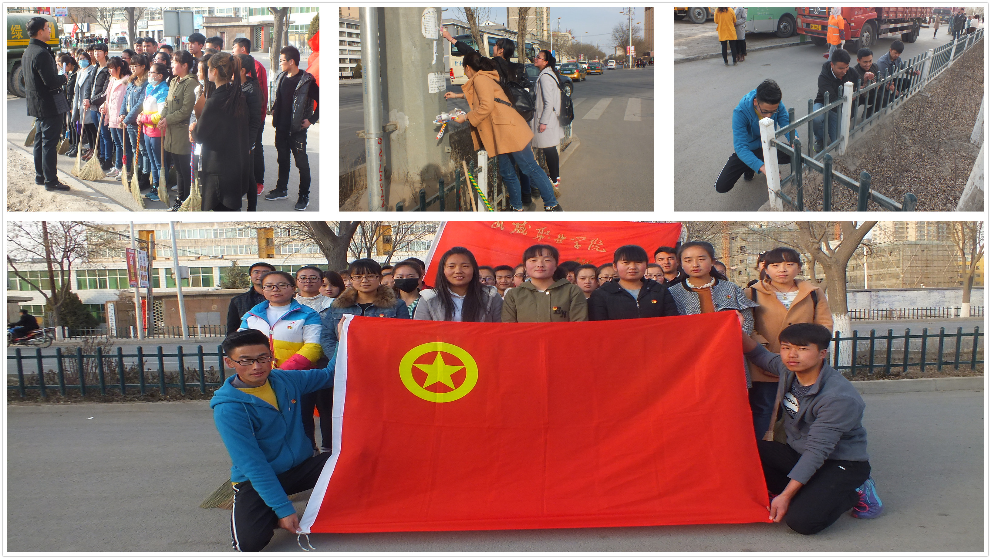 三月春風拂職院,雷鋒精神暖人心。沿著雷鋒的足跡,秉承雷鋒精神。3月3日下午,藥學(xué)系團總支結(jié)合院團委安排,組織廣大青年志愿者進行“傳承雷鋒精神,共建美麗校園”雷鋒日主題教育實踐活動,青年志愿者們紛紛走上街頭,盡己所能,對學(xué)院周邊道路環(huán)境衛(wèi)生進行打掃,廣告清理,垃圾清運等志愿服務(wù)活動。青年志愿者們積極勞動,傳播青春正能量,為建設(shè)美好家園,貢獻微薄力量。