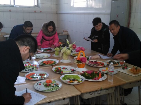 上午9:00—11:00中級烹調師理論考試在尚德樓115教室舉行,本次考試嚴格遵照人社局相關考試流程和要求,考試現場同學們沉著冷靜答題,沒有出現考生違規(guī)違紀現象。下午15:00—17:00實踐操作考試在經濟管理系烹飪實訓中心進行,從食品雕刻、冷菜拼盤、熱菜制作三個方面全面考核了考生的烹飪技能。經過同學們刻苦的訓練和充分的考前準備,在實操考核階段同學們都顯得信心十足。第一環(huán)節(jié)結束后,一道道精美的冷菜拼盤呈現在大家眼前,表現出同學們精湛的刀工和構圖能力,第二環(huán)節(jié)是熱菜部分,同學們調味準確、火候到位、裝盤得當,充分展現了同學們嫻熟的烹飪技能。