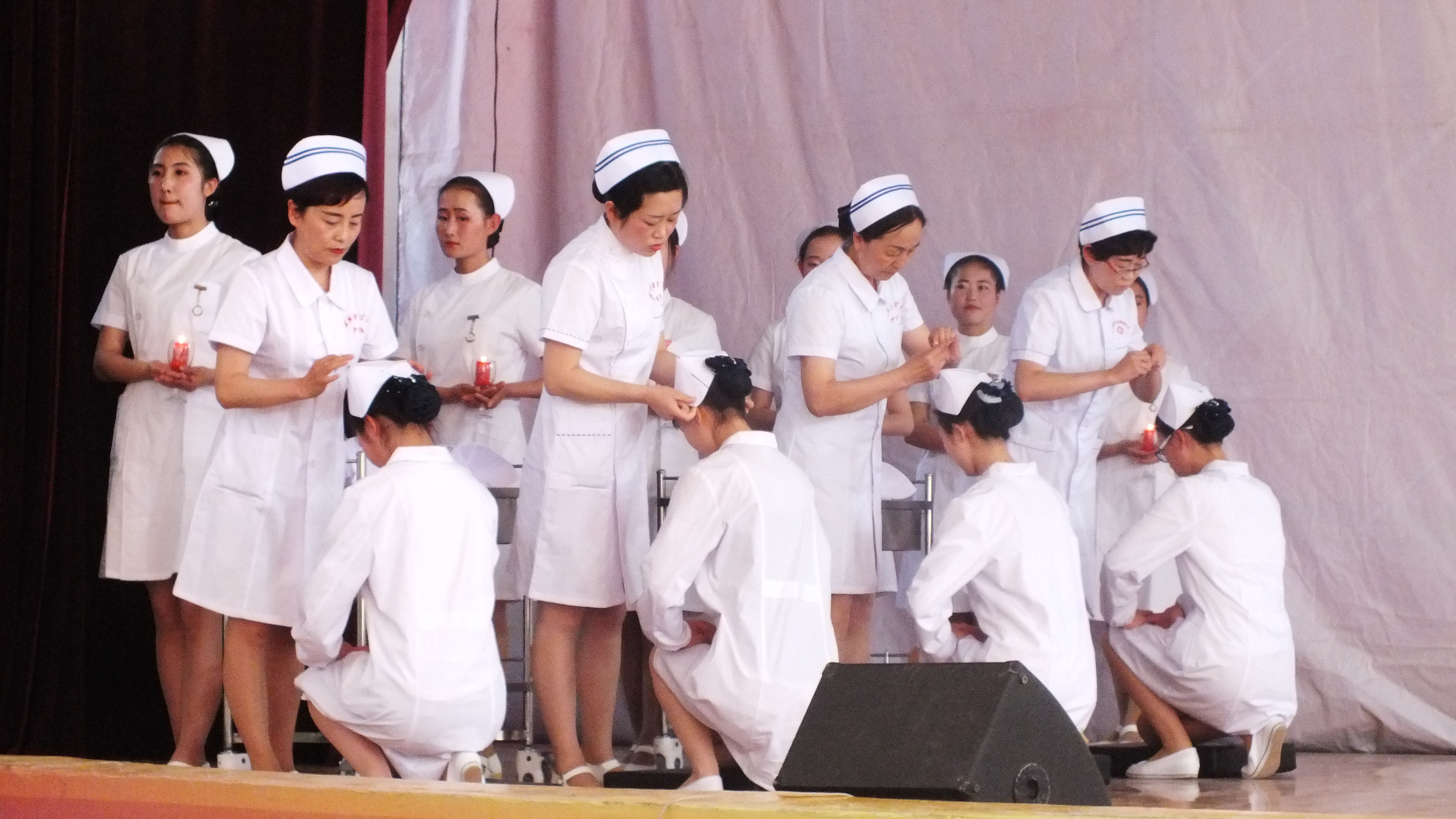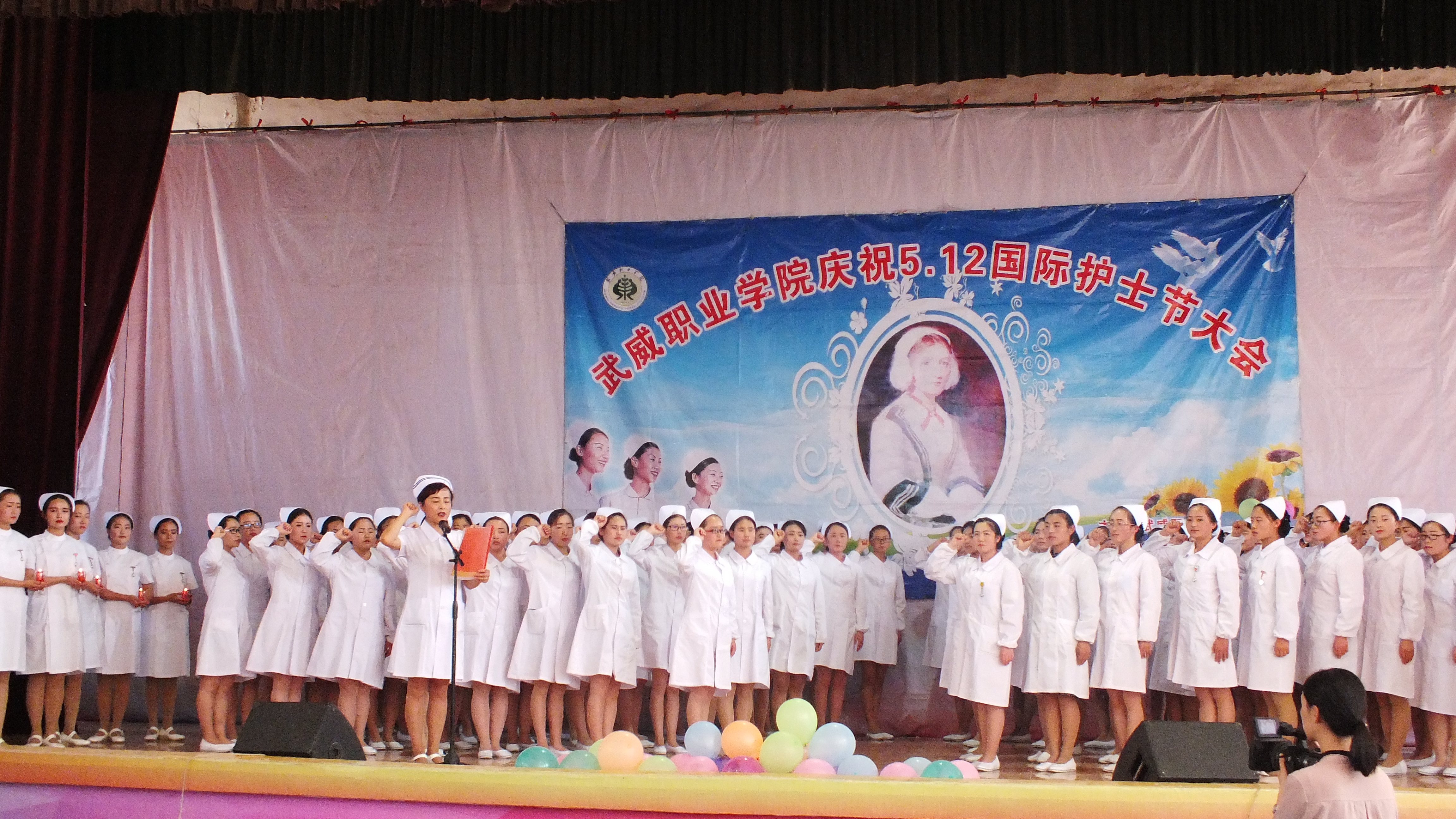 為繼承和弘揚南丁格爾精神,積極推動護理專業(yè)人才建設(shè)和職業(yè)內(nèi)涵塑造,展示我院護理專業(yè)師生風(fēng)采,在第106個國際護士節(jié)來臨之際,學(xué)院于5月12日下午在大禮堂隆重舉辦了慶祝國際護士節(jié)活動,武威市衛(wèi)生計生委副主任潘玉華、學(xué)院黨委副書記趙明、紀(jì)委書記張富國、副院長王永緒、直屬附屬醫(yī)院護理部主任、相關(guān)處室領(lǐng)導(dǎo)及護理系全體師生1200余人參與了本次活動?;顒影ㄗo士授帽儀式,護理實踐技能操作表演,第四屆護理技能大賽頒獎,慶祝“5.12”護士節(jié)文藝演出等內(nèi)容。
