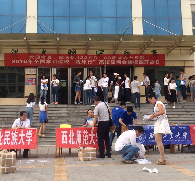 同一天,招生就業(yè)處還選派老師參加了在武威六中舉行的由《未來導報》主辦的“2016年全國本科院?!]原行’高招咨詢會”,就考生和家長關心的相關熱點問題進行了現(xiàn)場答疑解惑,考生及家長表示對他們掌握各院校熱門專業(yè)和報考要求有很大幫助。