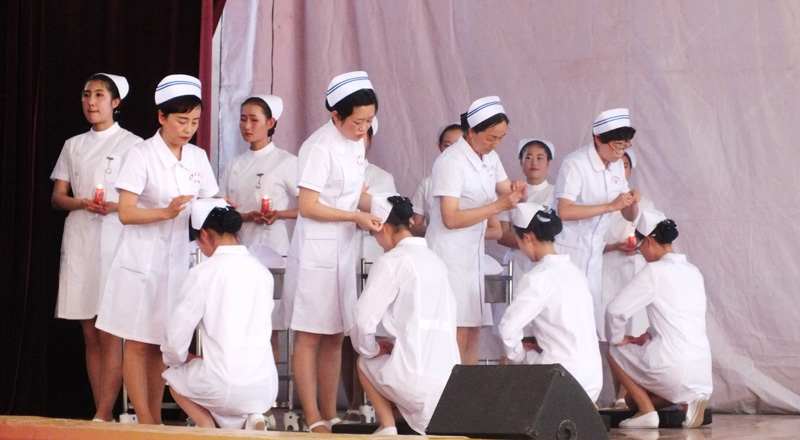 為繼承和弘揚南丁格爾精神,積極推動護(hù)理專業(yè)人才建設(shè)和職業(yè)內(nèi)涵塑造,展示我院護(hù)理專業(yè)師生風(fēng)采,在第106個國際護(hù)士節(jié)來臨之際,學(xué)院于5月12日下午在大禮堂隆重舉辦了慶祝國際護(hù)士節(jié)活動,武威市衛(wèi)生計生委副主任潘玉華、學(xué)院黨委副書記趙明、紀(jì)委書記張富國、副院長王永緒、直屬附屬醫(yī)院護(hù)理部主任、相關(guān)處室領(lǐng)導(dǎo)及護(hù)理系全體師生1200余人參與了本次活動?;顒影ㄗo(hù)士授帽儀式,護(hù)理實踐技能操作表演,第四屆護(hù)理技能大賽頒獎,慶祝“5.12”護(hù)士節(jié)文藝演出等內(nèi)容。