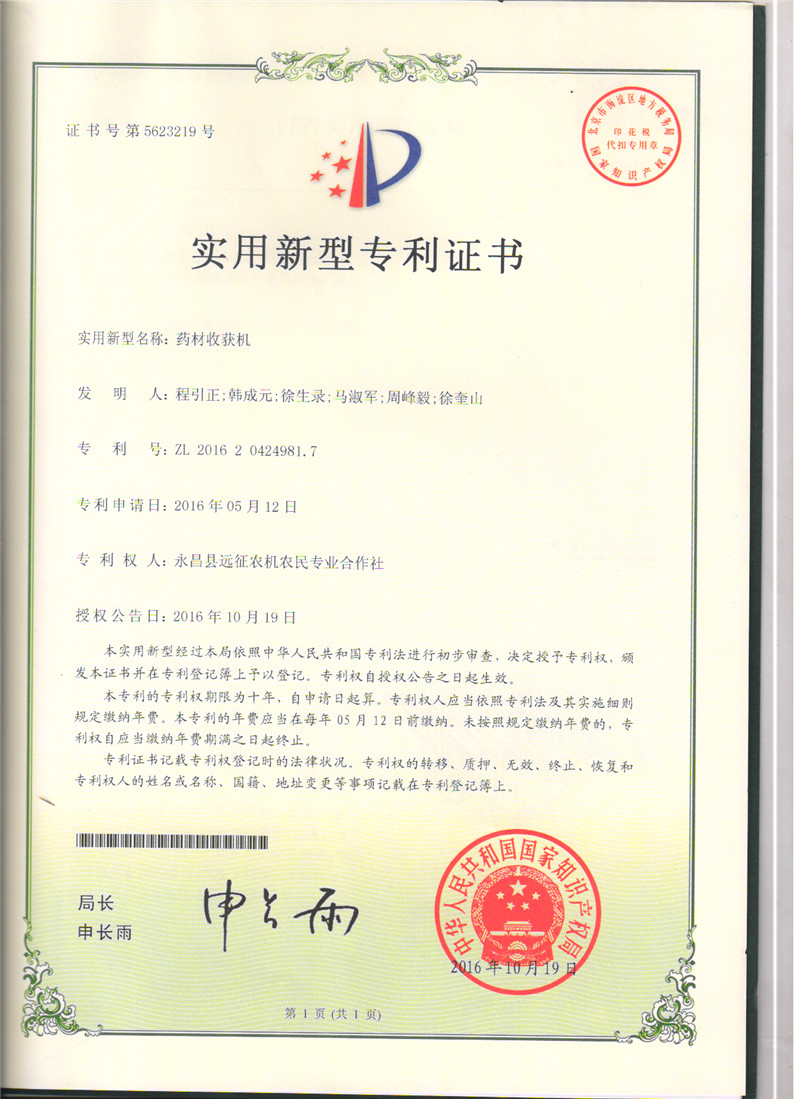 科研成果---實用新型專利:桿齒式廢膜撿拾機