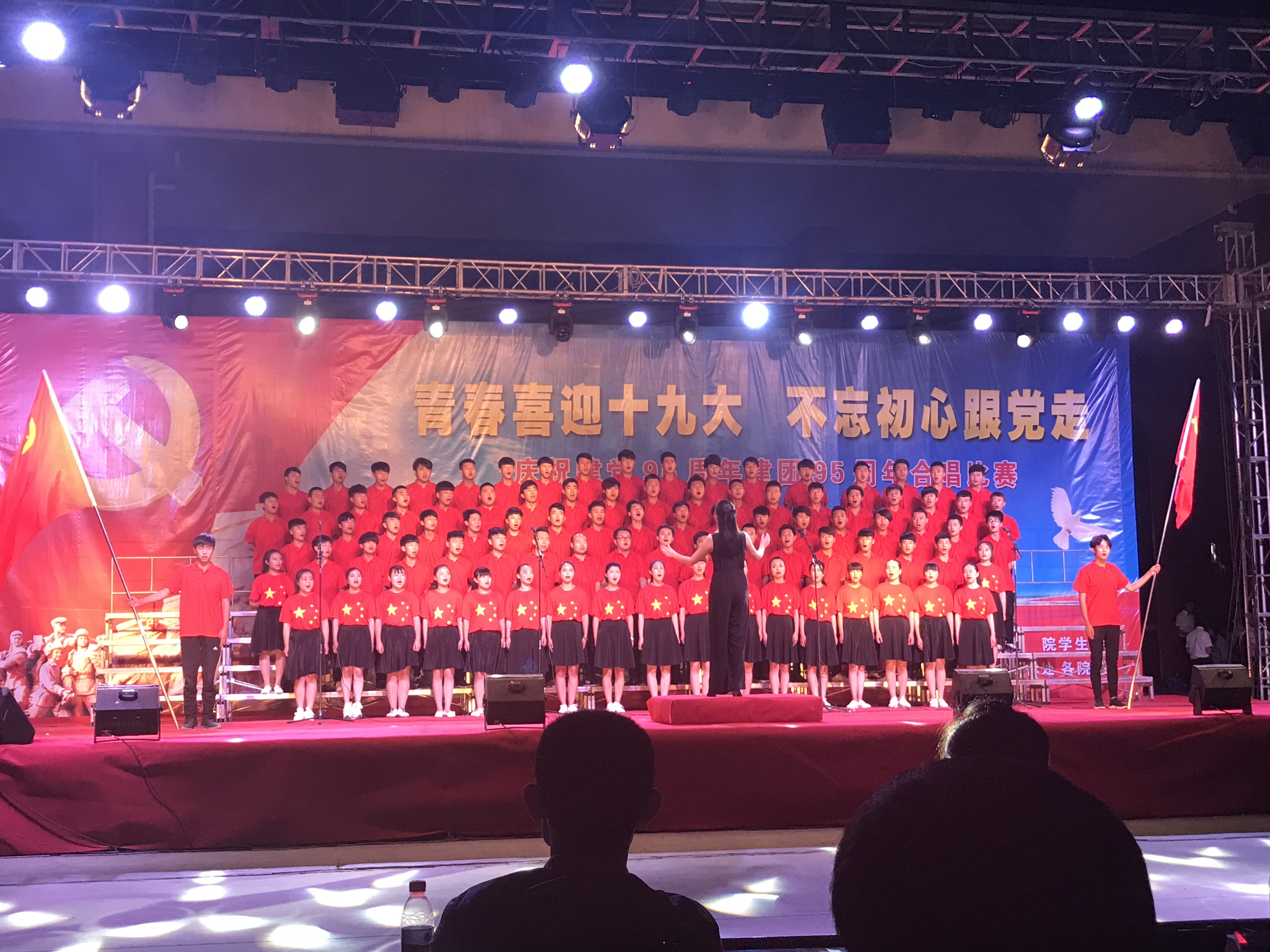 在持續(xù)半個月的合唱訓(xùn)練中,我系參加大合唱的90名同學(xué)和6位老師充分的準(zhǔn)備,以積極飽滿的態(tài)度投入到本次大合唱比賽的訓(xùn)練中,付出了大量的精力,放棄了許多休息時間,展現(xiàn)出了不怕吃苦,堅持不懈,自強(qiáng)自信的精神。比賽中,隊員們齊聚在黨旗下,著裝整齊,精神飽滿,以高昂的熱情、嘹亮的嗓音唱出了對黨的擁戴,對未來的憧憬,贏得了評委及現(xiàn)場觀眾的熱烈掌聲。