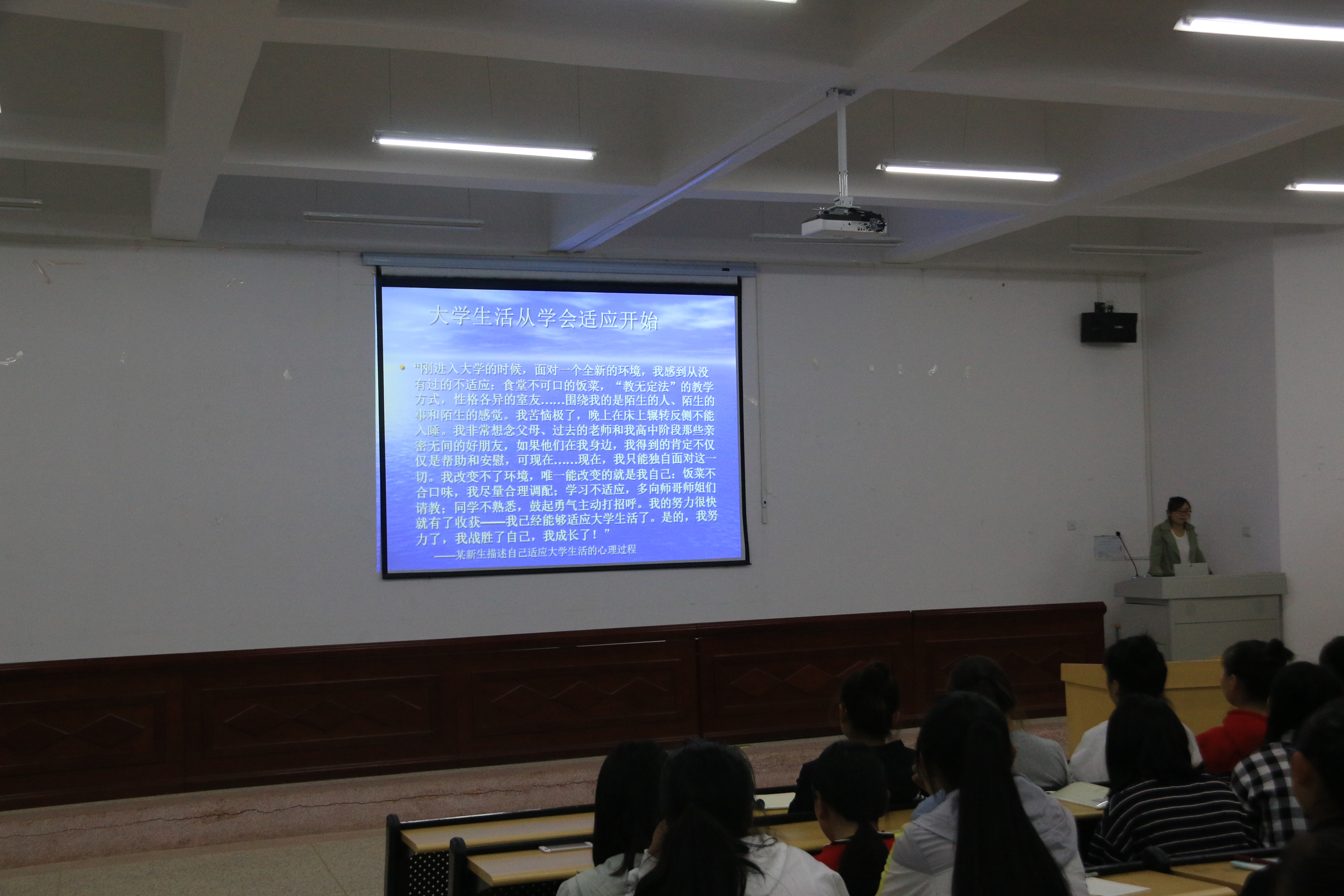 2017年9月29日,由取得國家二級心理咨詢師的人文藝術(shù)教育系劉菊蓮講師在勵勤樓階梯教室作了題為《大學生新生適應性》的心理健康教育講座。本次講座主要針對大一新生來到一個陌生的新環(huán)境產(chǎn)生的各種不適應等問題,給出相應的解決方法,起到了拋磚引玉的作用,同時以提高高校思想政治的針對性和實效性。