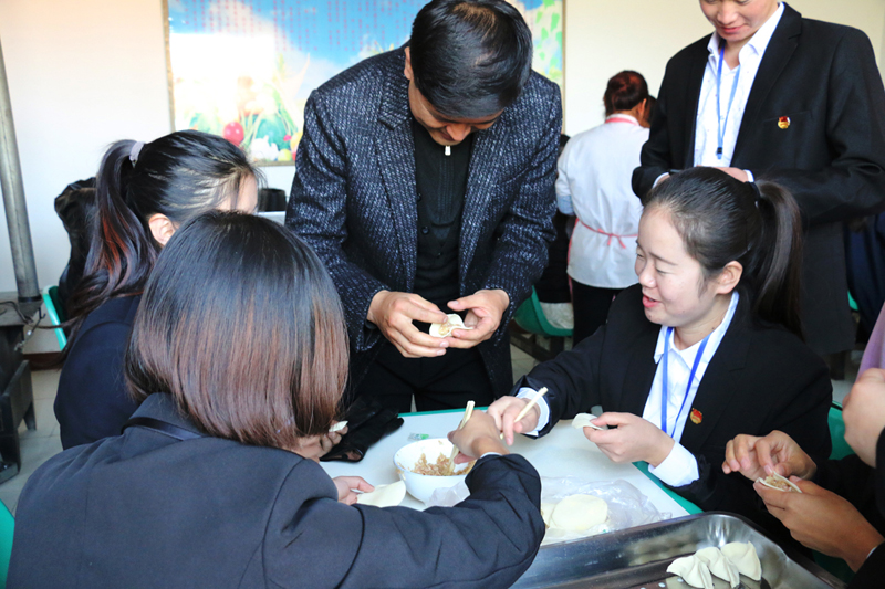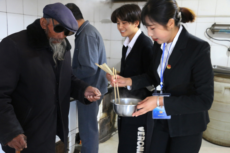上午八點半,醫(yī)學技術(shù)與信息管理系各位黨員、入黨積極分子、團學干部、師生代表在廚房為老人包餃子,并整理被褥;康復治療專業(yè)教師黨員高萬飛為老人講解“如何健康養(yǎng)生”;系團總支為老人們送上毛巾、牙膏、香皂等日常生活用品;愛牙協(xié)會的志愿者為老人,進行牙齒檢查,講解如何愛護牙齒;中醫(yī)養(yǎng)生協(xié)會的志愿者為老人們測血壓,演示常用的按摩方法。中午時分,老人們吃著熱氣騰騰的餃子,看著全系師生代表為老人們準備的精彩節(jié)目,臉上洋溢著幸福的笑容。