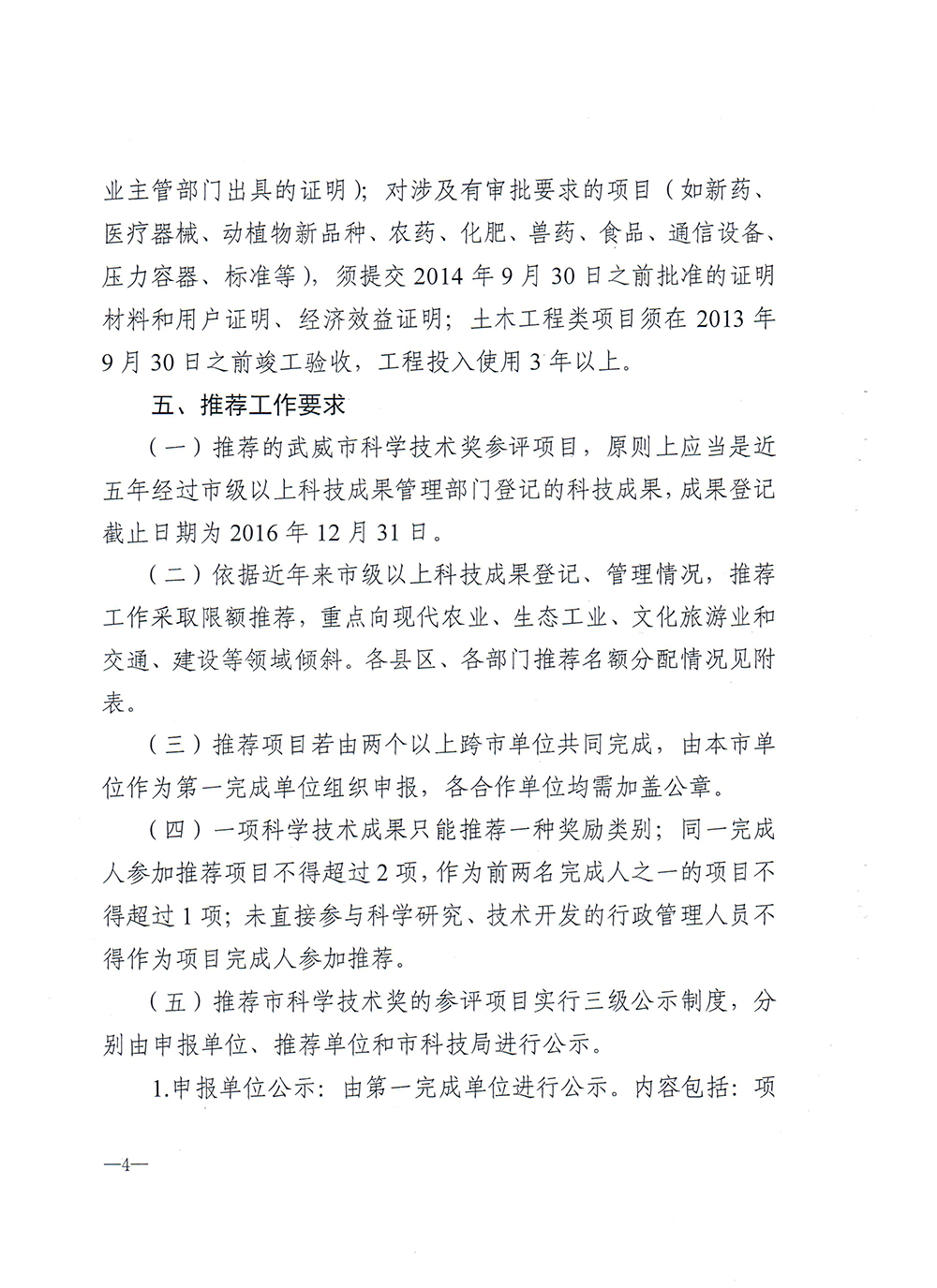 關(guān)于做好2017年度武威市科學(xué)技術(shù)獎(jiǎng)推薦工作的通知