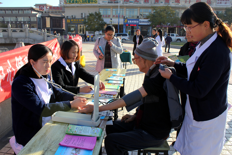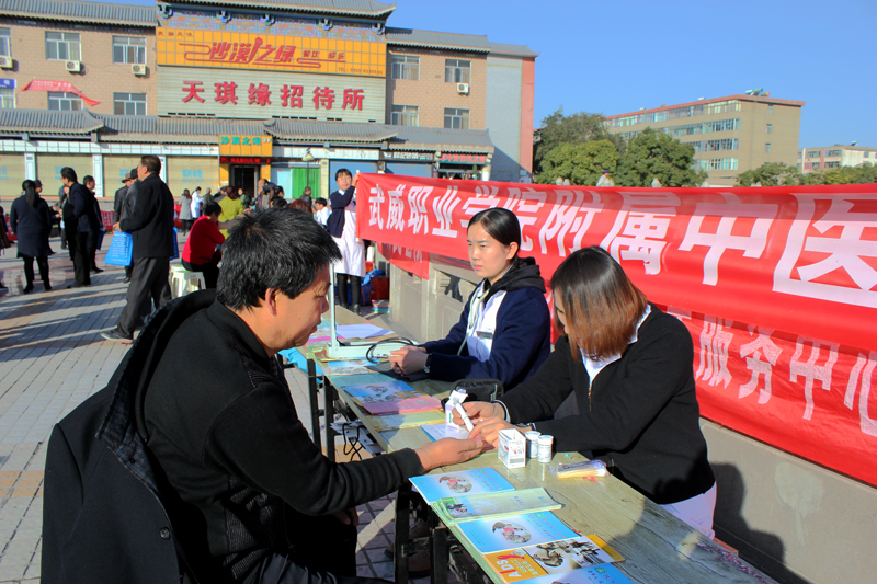 11 月1,為配合2017年甘肅衛(wèi)生計(jì)生題材劇目秦腔《皇甫謐》在武威成功上演,根據(jù)市衛(wèi)生計(jì)生委安排,直屬附屬醫(yī)院派出醫(yī)生李生海、護(hù)士許海燕等醫(yī)務(wù)人員組成的醫(yī)療小分隊(duì),與其他10余家醫(yī)療衛(wèi)生單位的醫(yī)務(wù)人員一道,在武威南城門廣場(chǎng)開展便民義診服務(wù)活動(dòng)。