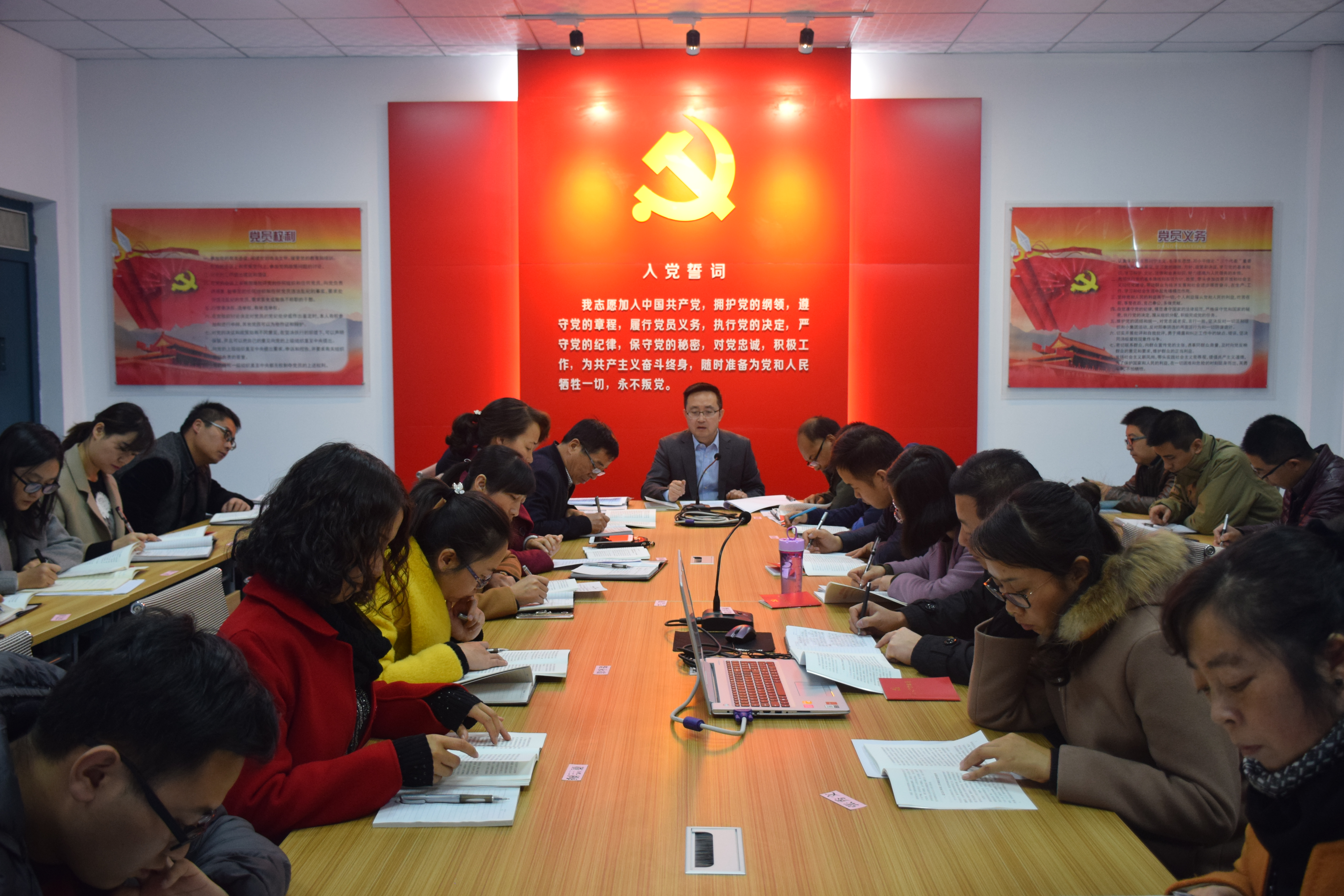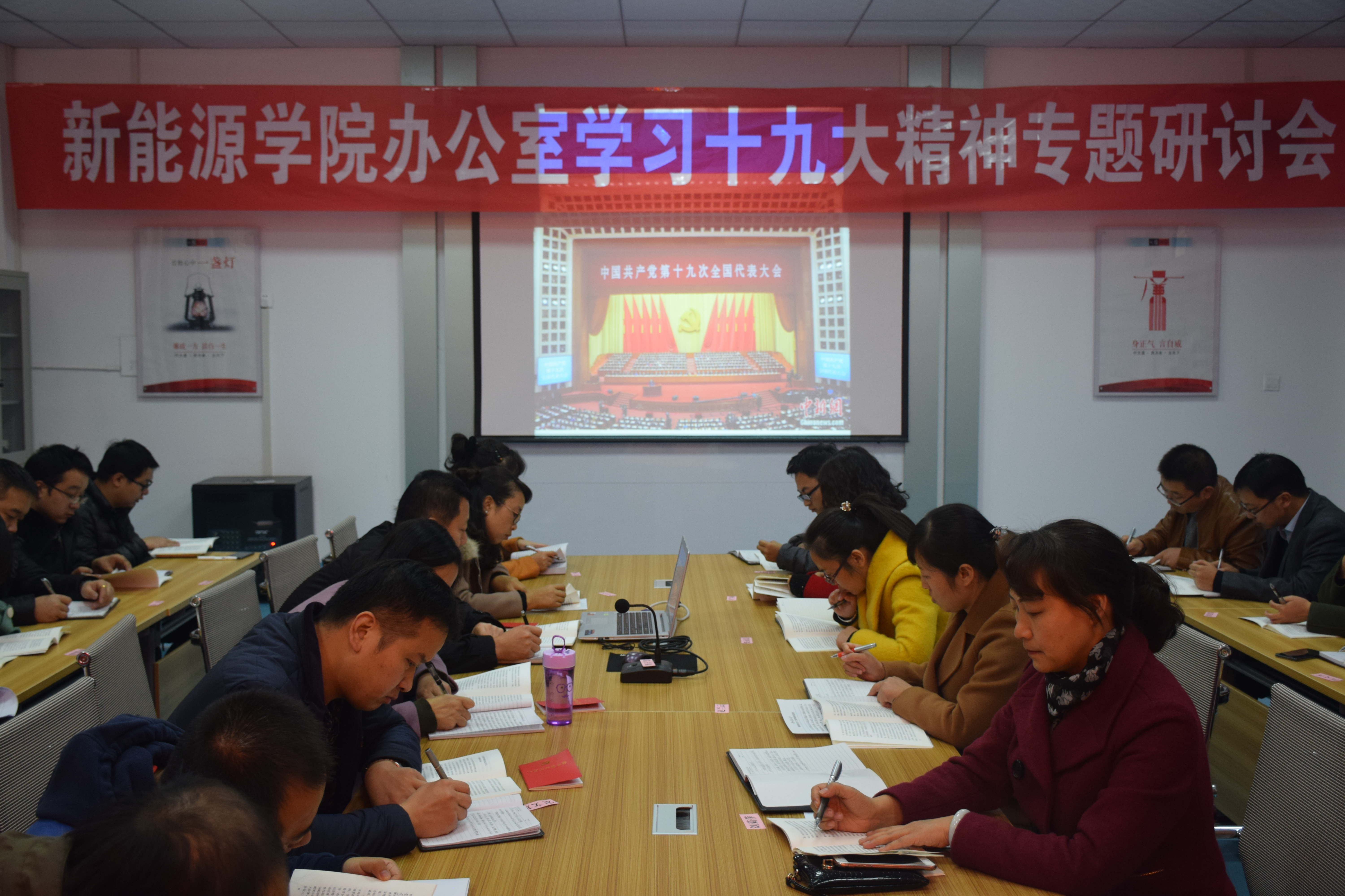 為認(rèn)真學(xué)習(xí)貫徹黨的十九大精神,深入領(lǐng)會(huì)習(xí)近平新時(shí)代中國特色社會(huì)主義思想,準(zhǔn)確理解和把握新時(shí)代我國社會(huì)主要矛盾變化以及經(jīng)濟(jì)領(lǐng)域的重大問題。11月23日下午,新能源與動(dòng)力工程學(xué)院組織全體教職工在黨員活動(dòng)室召開學(xué)習(xí)十九大精神專題研討會(huì)。會(huì)議由新能源與動(dòng)力工程學(xué)院辦公室黨支部書記任陶主持。