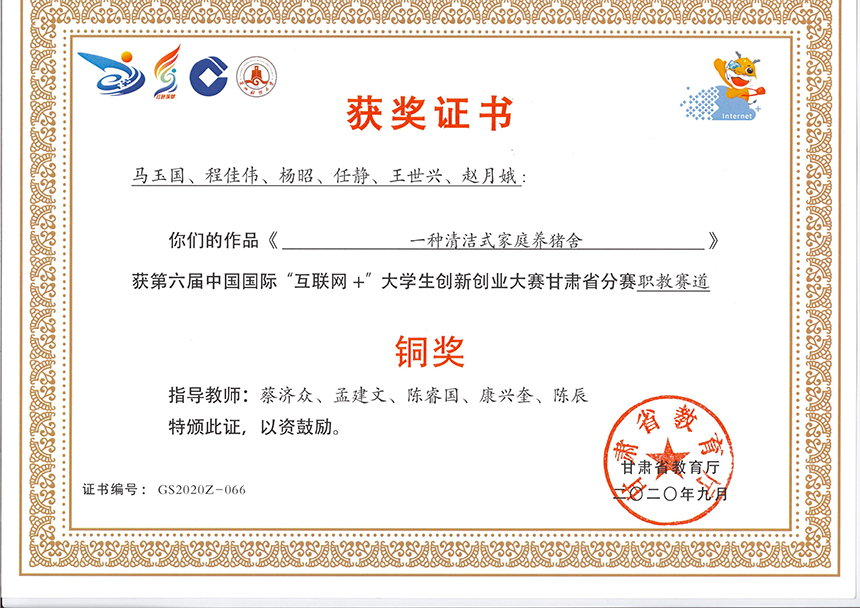 第六屆中國國際“互聯(lián)網(wǎng)+”大學生創(chuàng)新創(chuàng)業(yè)大賽甘肅省分賽職教賽道《一種清潔式家庭養(yǎng)豬舍》