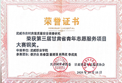 6.項(xiàng)目組成員蔡濟(jì)眾、陳睿國2020年11月主持項(xiàng)目《武威市農(nóng)村房屋質(zhì)量安全調(diào)查研究》榮獲第三屆甘肅省青年志愿者服務(wù)項(xiàng)目大賽銅獎(jiǎng)
