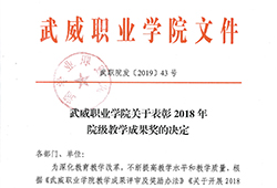 項(xiàng)目組成員崔玉萍、蔡濟(jì)眾2019年5月獲得武威職業(yè)學(xué)院院級教學(xué)成果